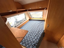 Boční rozkládací sezení, francouzská postel, palandy se žebříkem, kuchyň, WC se sprchou, umyvadlo zvlášť