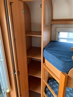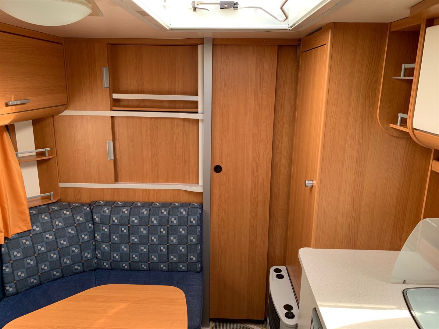 Boční rozkládací sezení do "U", francouzská postel, velká palanda se žebříkem, kuchyň, WC, umyvadlo zvlášť