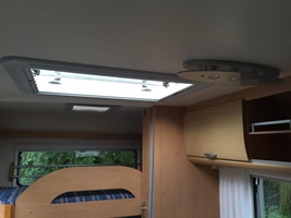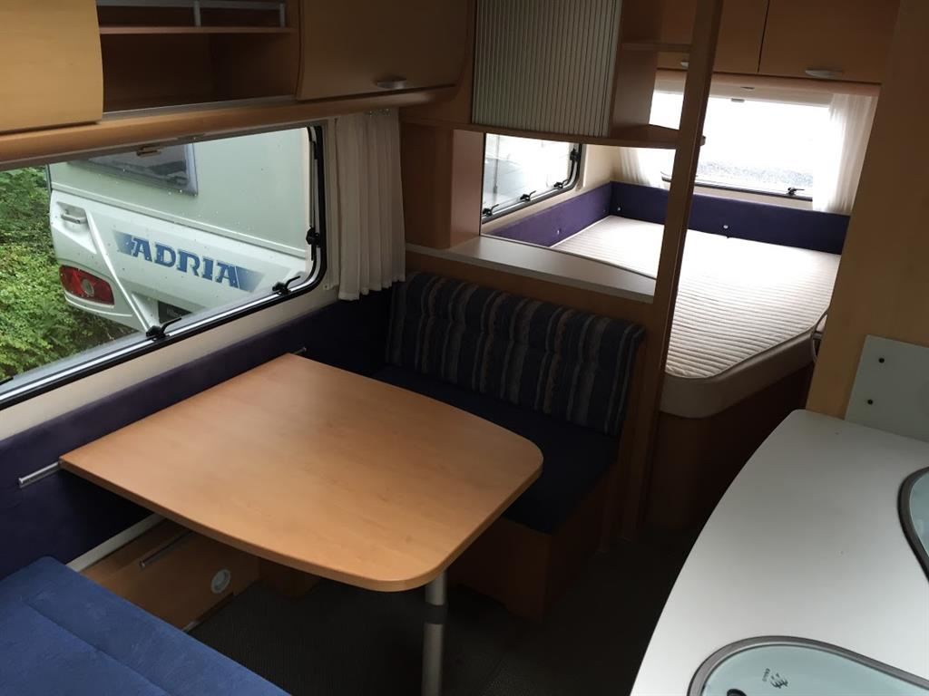 Rozkládací boční sezení, velká francouzská postel, palandy, kuchyň, WC se sprchou, umyvadlo zvlášť.