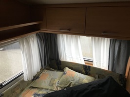 Boční rozkládací sezení, francouzská postel, velká palanda se žebříkem, kuchyň, WC se sprchou , umyvadlo mimo WC
