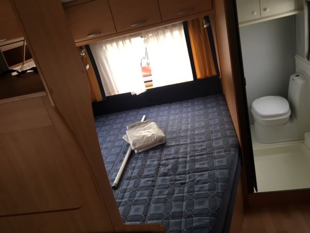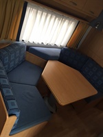 Rozkládací sezení do ,,U", velká francouzská postel, palandy, WC se sprchou, umyvadlo zvlášť