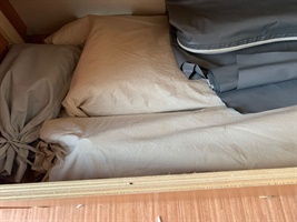 Boční rozkládací sezení, velká francouzská postel, kuchyň, WC s umyvadlem