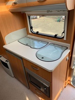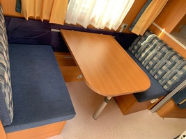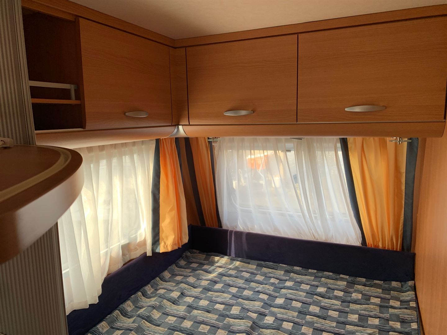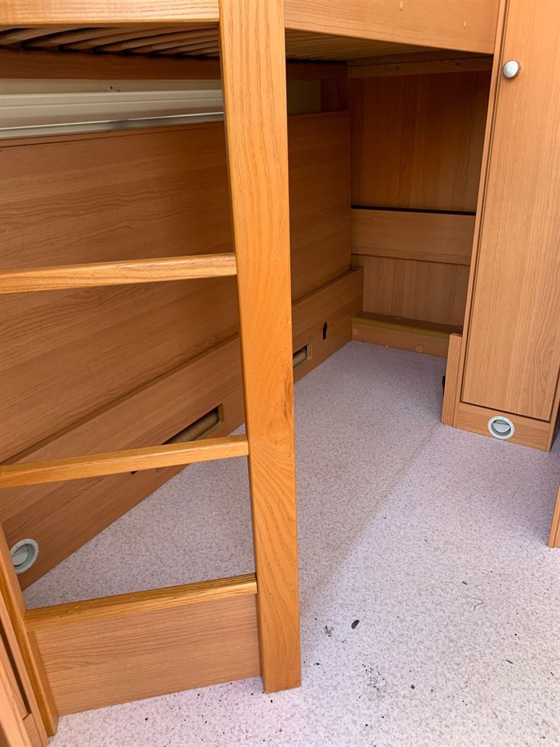 Boční rozkládací sezení, francouzská postel, velká palanda se žebříkem, kuchyň, WC, toaletní koutek
