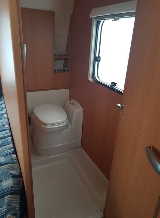 Velké rozkládací sezení ve tvaru U, francouzská postel, kuchyň, WC, toaletní koutek