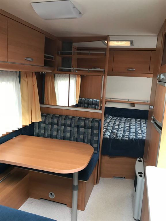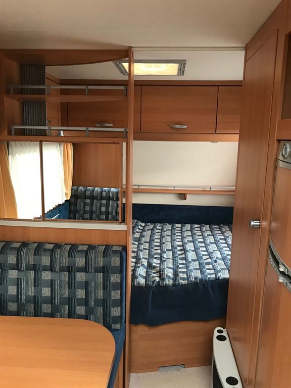 Boční rozkládací sezení, francouzská postel, velká palanda se žebříkem, kuchyň, WC s umyvadlem