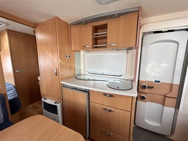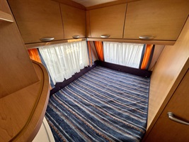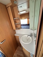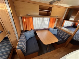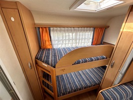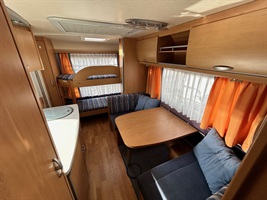 Boční rozkládací sezení, francouzská postel, velká palanda se žebříkem, kuchyň, WC se SPRCHOU, toaletní koutek