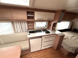 Velké rozkládací sezení ve tvaru U, velká francouzská postel, kuchyň, WC SE SPRCHOU, toaletní koutek