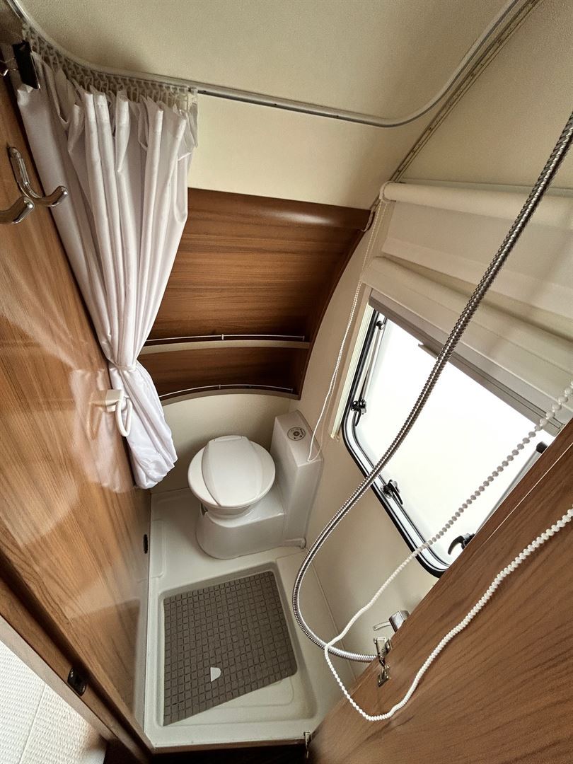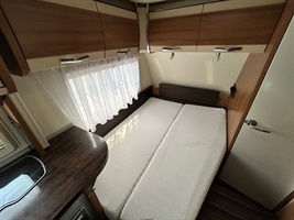 Velké rozkládací sezení ve tvaru U, francouzská postel, kuchyň, WC se SPRCHOU, toaletní koutek
