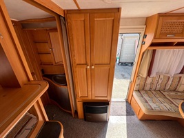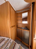 Velké rozkládací sezení do ,,U", velká francouzská postel, kuchyň, WC se sprchovu, umyvadlo zvlášť