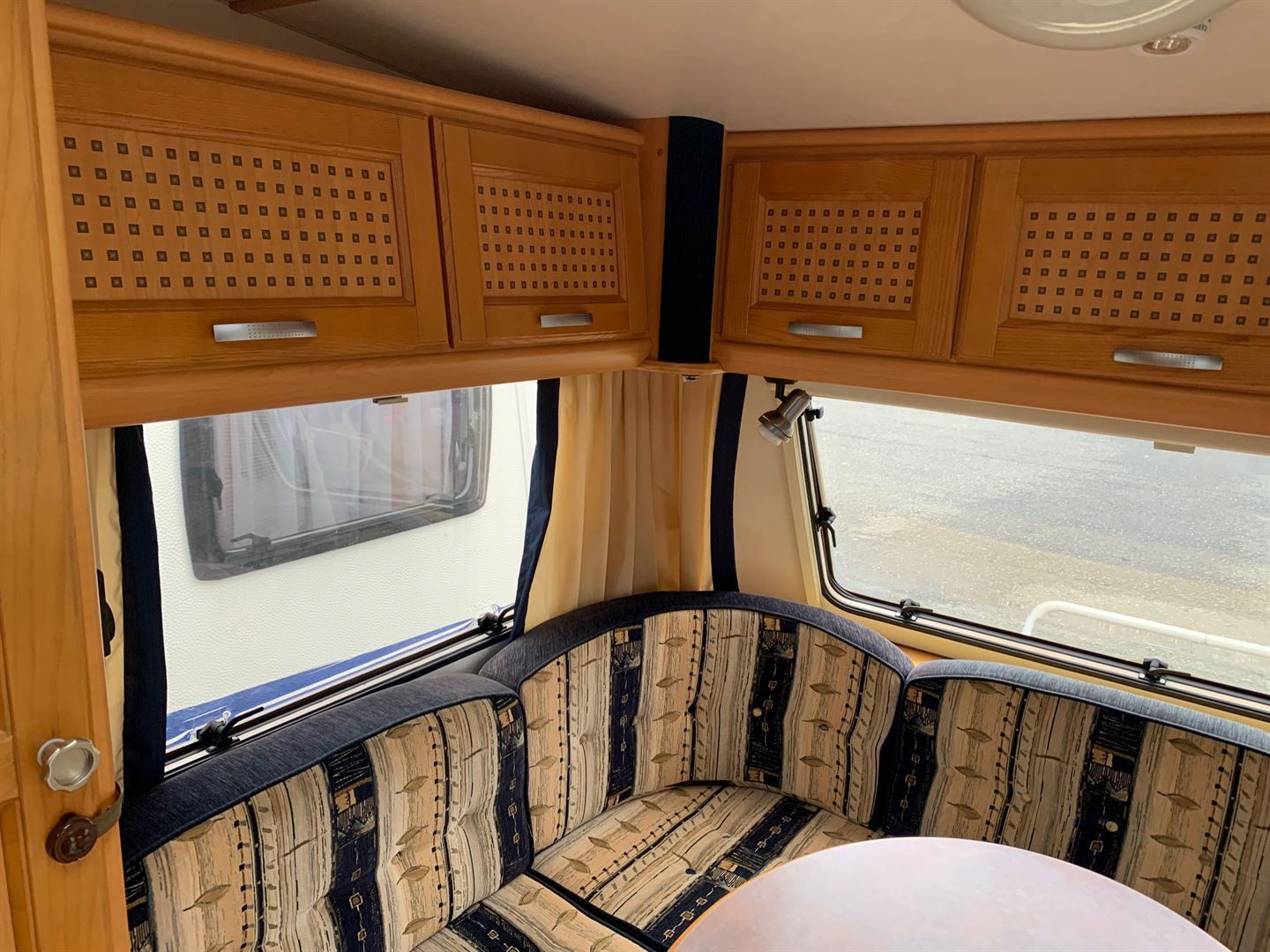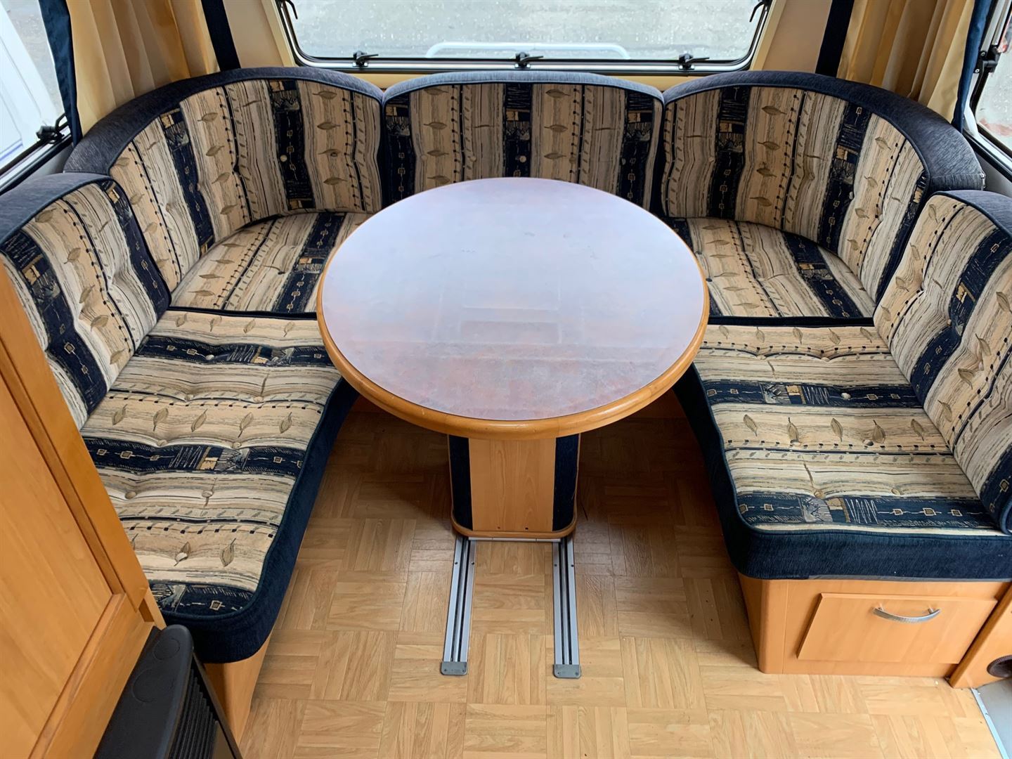 Rozkládací sezení do tvaru U, oddělené postele s možností dokoupení rośtu pro vytvoření velkého letiště, kuchyň, WC s umyvadlem