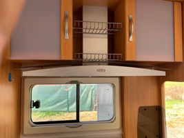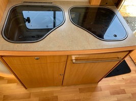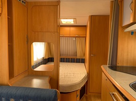 Rozkládací boční sezení, francouzská postel, kuchyň, WC se sprchou, toaletní koutek