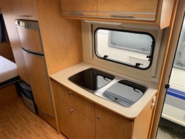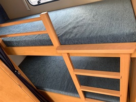Velké rozkládací sezení ve tvaru U, francouzská postel, palandy, kuchyň, WC se sprchou, toaletní koutek