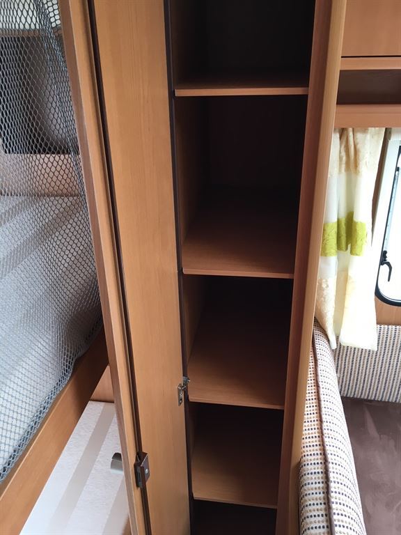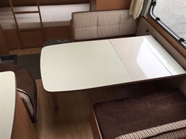 Rozkládací boční sezení, velká francouzská postel, palandy, kuchyň, WC se sprchou, umyvadlo zvlášť.