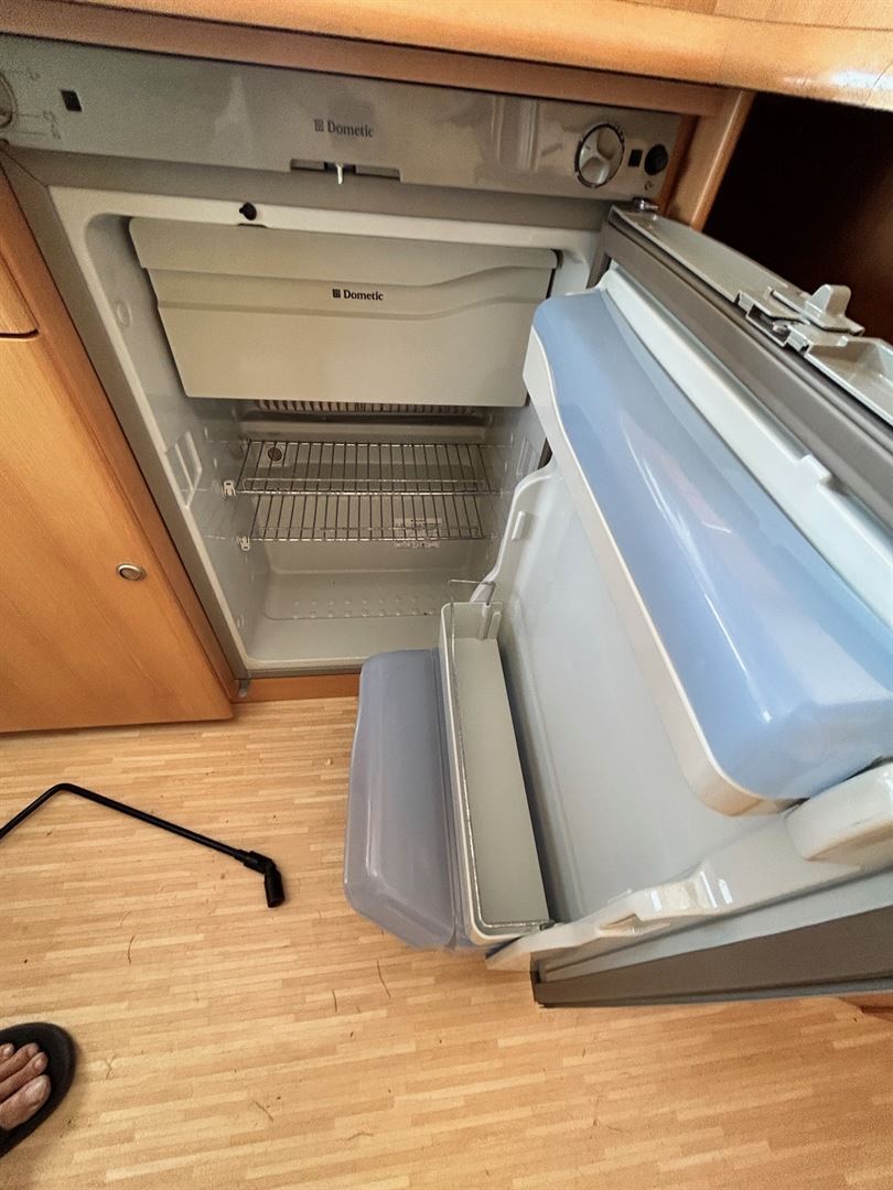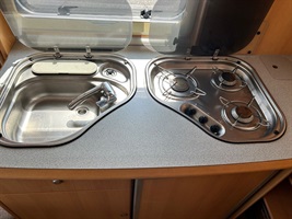 Velké rozkládací sezení ve tvaru U, francouzská postel, kuchyň, WC, toaletní koutek