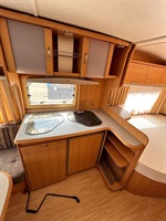 Velké rozkládací sezení ve tvaru U, francouzská postel, kuchyň, WC, toaletní koutek