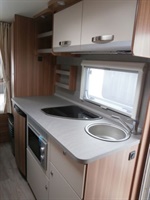 Rozkládací boční sezení s rozšířením, francouzská postel, palanda pro 3 děti, kuchyň, WC se sprchou a umyvadlem