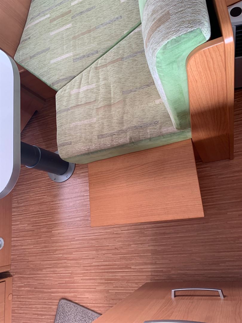 Boční rozkládací sezení, francouzská postel, kuchyň, WC, umyvadlo zvlášť.