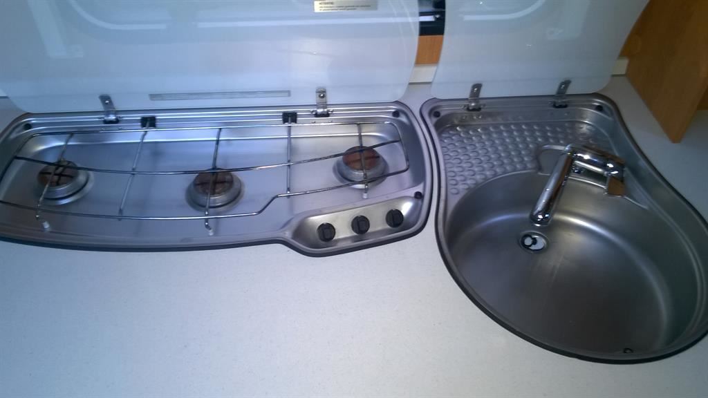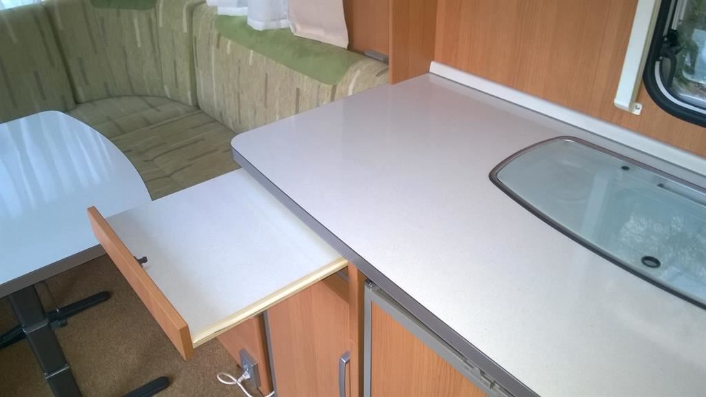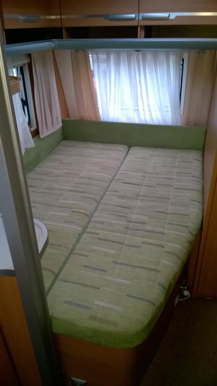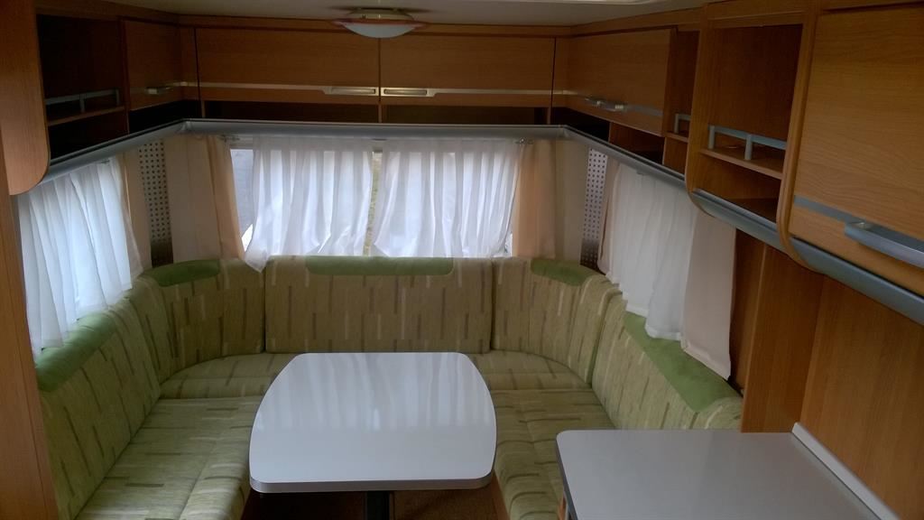 Velké rozkládací sezení do ,,U", francouzská postel, kuchyň, WC, umyvadlo zvlášť.