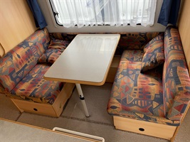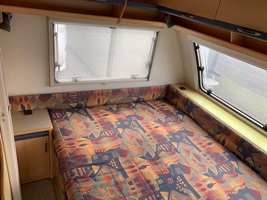 Boční rozkládací sezení, velká francouzská postel, palandy, kuchyň, WC se sprchou