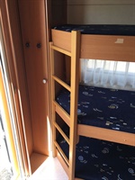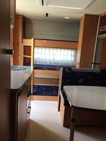 Rozkládací boční sezení, velká francouzská postel, 3 palandy, kuchyň, WC, umyvadlo zvlášť.