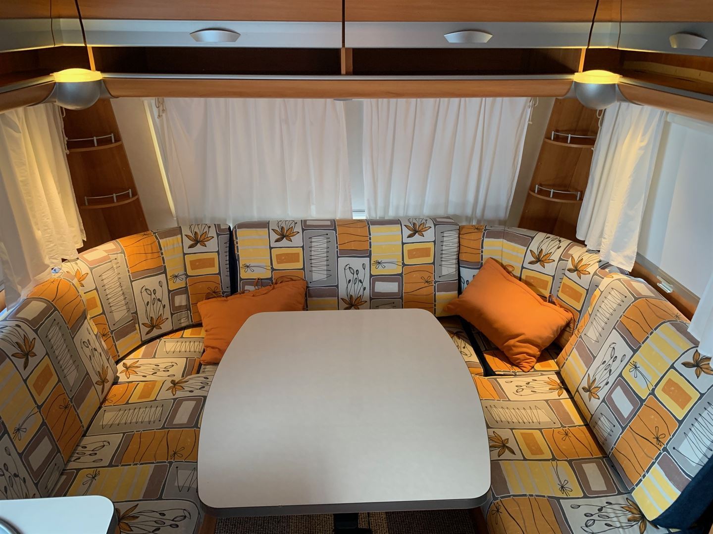 Velké rozkládací sezení do ,,U", francouzská postel, kuchyň, WC, samostatná plnohodnotná sprcha, umyvadlo