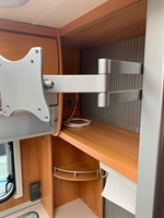 Velké rozkládací sezení ve tvaru U, velká francouzská postel, kuchyň, WC se sprchou a sprchovou vaničkou, umyvadlo zvlášť