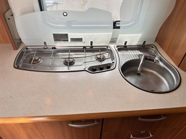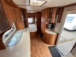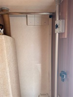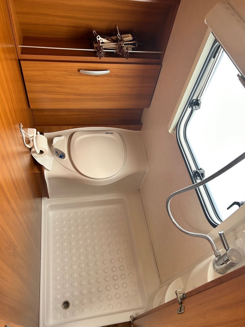 Velké rozkládací sezení do ,,U", francouzská postel, kuchyň, WC se sprchou a sprchovým závěsem, toaletní koutek